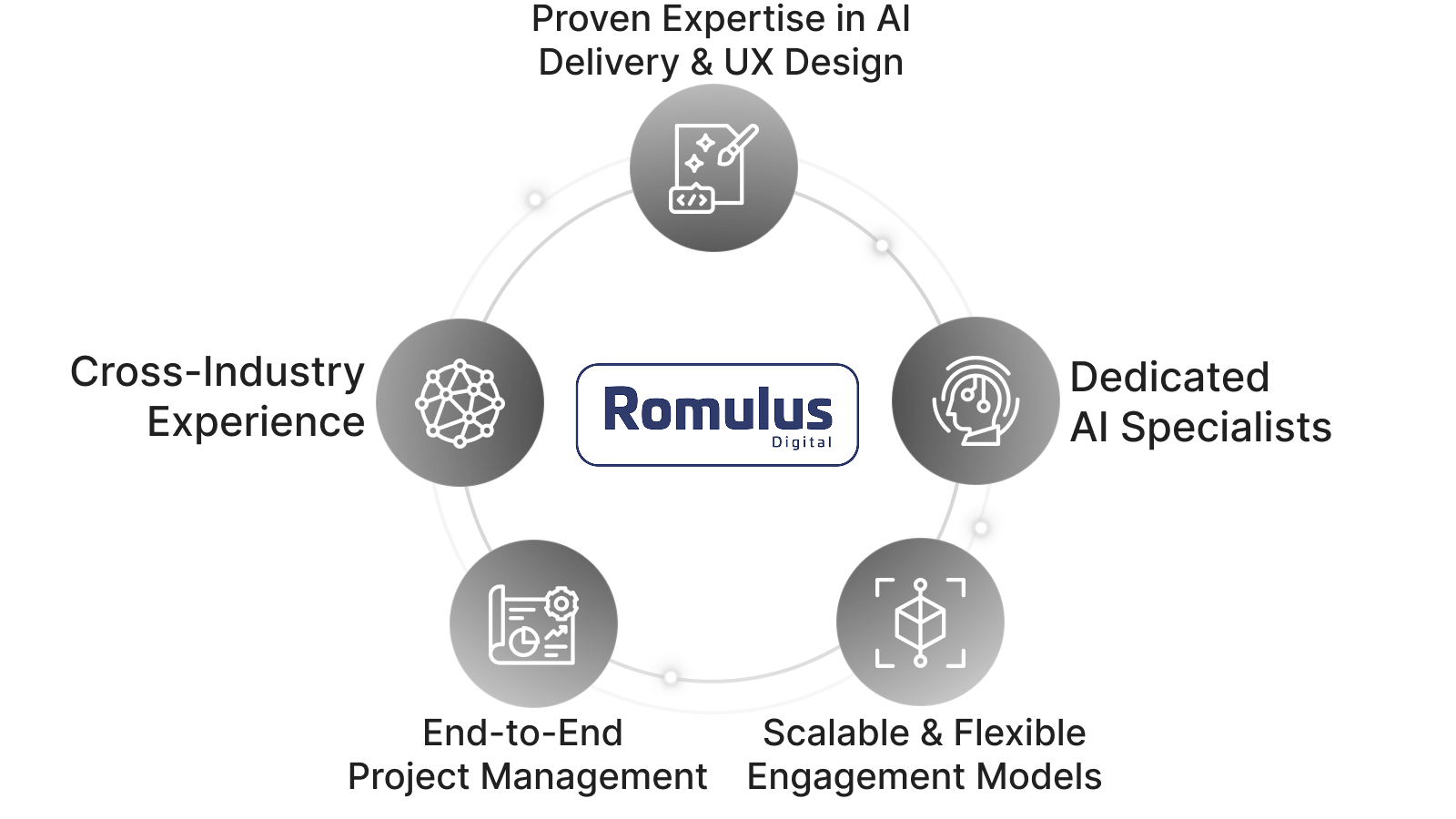 At Romulus Digital, we combine AI innovation, scalable architecture, and secure deployment to ensure every solution is tailored to your needs and aligned with your strategic goals.